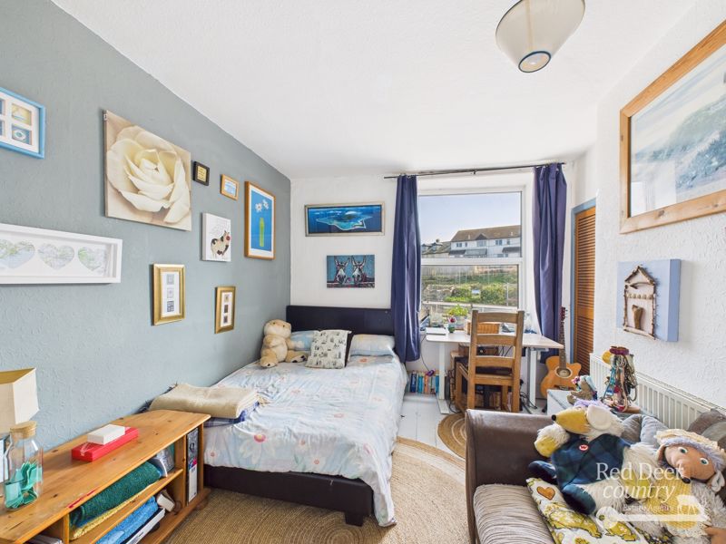 Externally there is an attractive courtyard garden to the front, overlooking the West Somerset Steam Railway Station. The rear garden has been landscaped with ease of maintenance in mind and offers 2 seating areas, good sized gravel area (formerly grass), gardeners WC and a useful stone outbuilding with light and power – ideal for use as a hobby room or home office. Parking is available in the car park directly adjacent to the house. Residents parking permits can be obtained from the council for a cost of £220 per year and are useable for all car parks within Watchet (subject to availability).