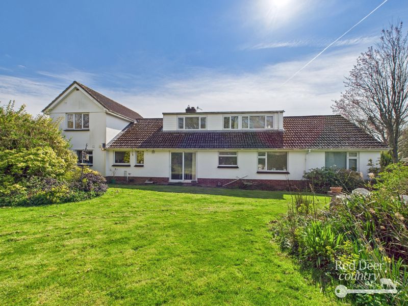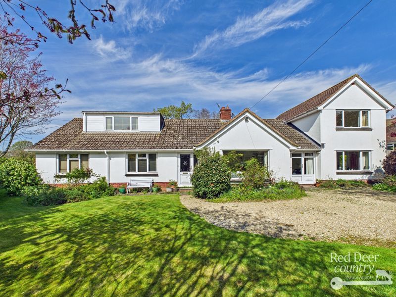 Substantial detached chalet bungalow offering 4 double bedrooms, 3 bathrooms and 3 reception rooms and set within approx. 1/4 acre of gorgeous mature gardens with stunning views into the Quantocks. For sale with no onward chain.