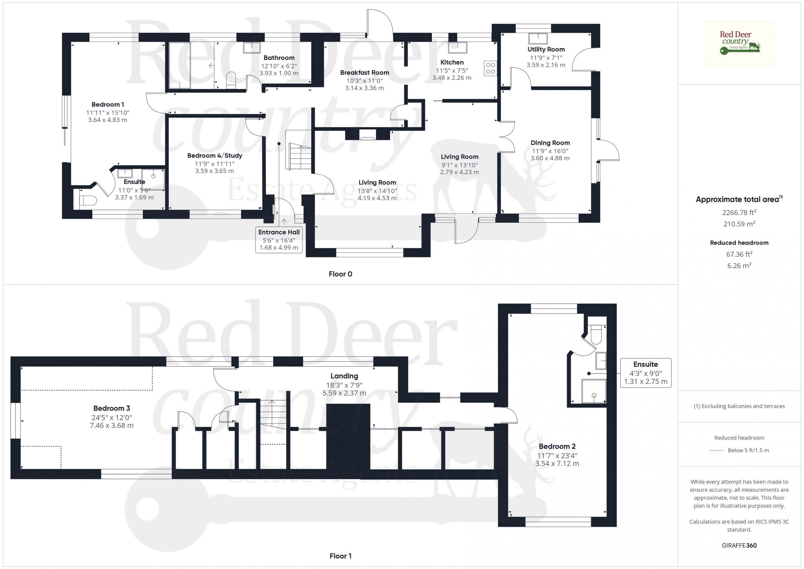 Benefitting from gas central heating and double glazing, the accommodation comprises, on the ground floor – entrance hall, sitting room, dining room, kitchen, breakfast room, utility, master bedroom with ensuite shower room, study/fourth bedroom and a large family bathroom. The first floor offers 2 exceptionally generous double bedrooms, one of which has an ensuite shower room.