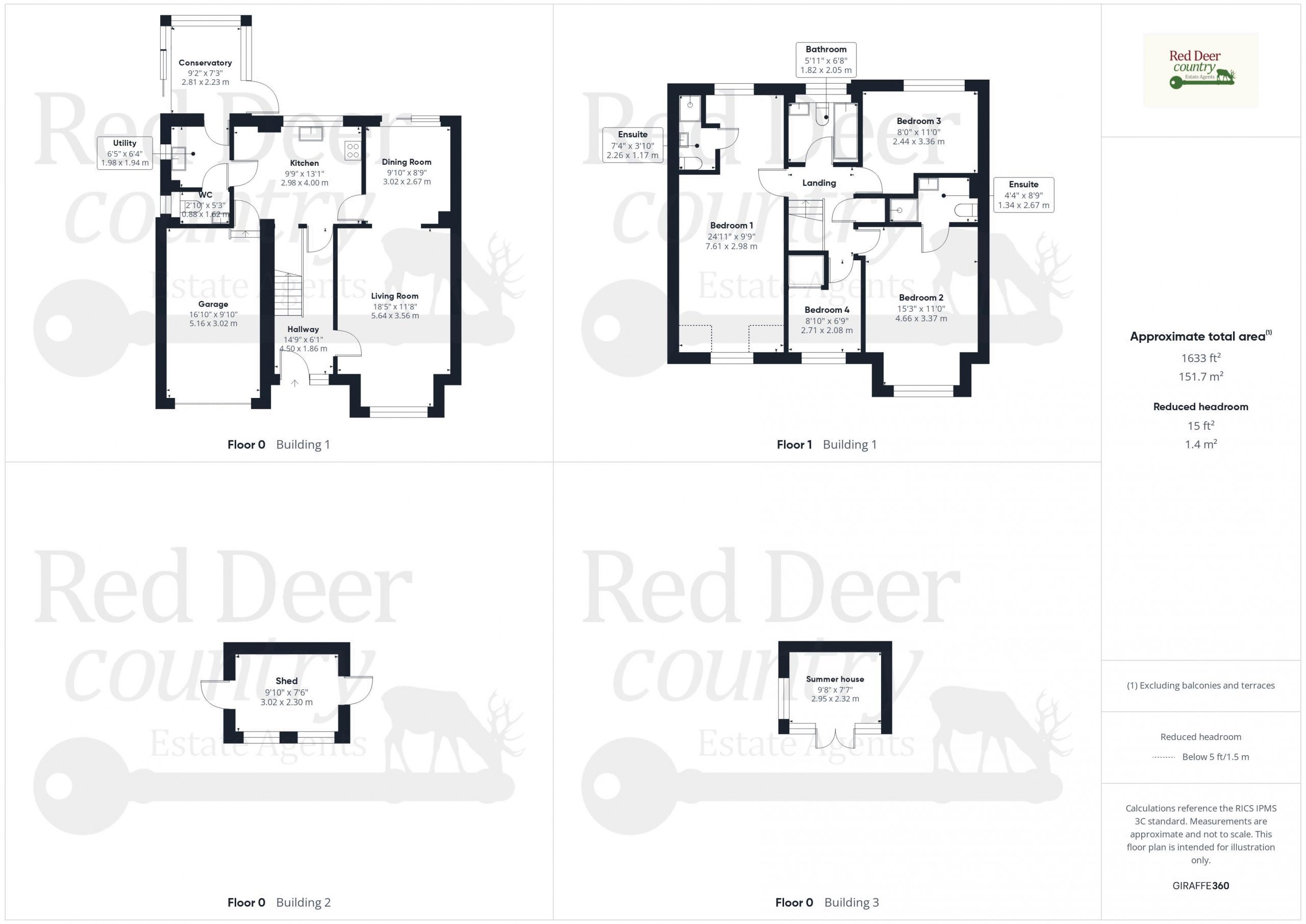 Benefitting from double glazing and electric central heating, the accommodation comprises, on the ground floor – entrance hall, sitting room, dining room, kitchen/breakfast room, utility, cloakroom, and a conservatory. The first floor offers a large master bedroom with ensuite shower room, guest bedroom with ensuite shower room, and 2 further bedrooms serviced by a family bathroom.